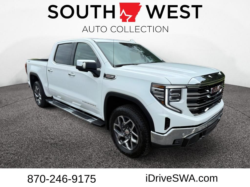 SLT Convenience Package: Ventilated Driver and Front Passenger Seats; Power Rake and Telescoping Steering Column; Premium Bose 7-Speaker Sound System; Floor-Mounted Center Console; Wireless Charging; Front Bucket Seats. X31 Off-Road and Protection Package: 275/60R20SL AT BW Tires; 20" Polished Aluminum Wheels; Spray-On Pickup Bedliner with GMC Logo; All-Weather Floor Liner. X31 Off-Road Package: 2-Speed Transfer Case; Hill Descent Control; Dual Exhaust System; Off-Road Suspension; Skid Plates; Heavy-Duty Air Filter; X31 Hard Badge. SLT Preferred Package: Heated 2nd Row Outboard Seats; Power Sliding Rear Window with Rear Defogger; Adaptive Cruise Control; Universal Home Remote. SLT Premium Plus Package. ProGrade Trailering System: In-Vehicle Trailering System App; Hitch View. Sierra Safety Plus Package: Rear Cross Traffic Braking; HD Surround Vision; Trailer Side Blind Zone Alert; Rear Pedestrian Detection; Ultrasonic Front and Rear Park Assist; Safety Alert Seat; Trailer Camera Provisions. Preferred Equipment Group 4SA: HD Rear Vision Camera; LED Cargo Area Lighting; Remote Vehicle Starter System; Electric Rea