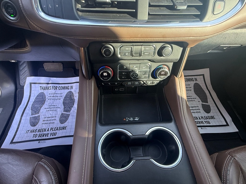 Preferred Equipment Group 3LZ: Bright Front and Rear Door Sill Plates; Memory Settings; Stop/start System Disable Button; Perforated Leather Seat Trim; Remote Start; 3.23 Rear Axle Ratio; 3rd Row 60/40 Power-Folding Split-Bench Seat; Safety Alert Seat; Chrome Door Handles with Body-Colour Strip; Hill Descent Control; 6.2L EcoTec3 V8 Engine; Rear Camera Mirror Washer; Inside Rearview Auo-Dimming Rear Camera Mirror; 3. 402 Kgs (7. 500 Lbs) GVWR; Heated Steering Wheel; LED Daytime Running Lamps; Wheels: 22" X 9" Sterling Silver Premium Painted; Rear Cross Traffic Alert; Electronic 10-Speed Automatic Transmission with Overdrive; Driver and Front Outboard Passenger Airbags; Wireless Charging; Front High-Back Reclining Bucket Seats; Universal Home Remote; Colour-Keyed Carpeting Floor Covering; Heated 2nd Row Outboard Seats; Hands-Free Rear Power Programmable Liftgate; Chevrolet Infotainment 3 Premium System Radio; 2-Speed Active Electronic Autotrac Tr